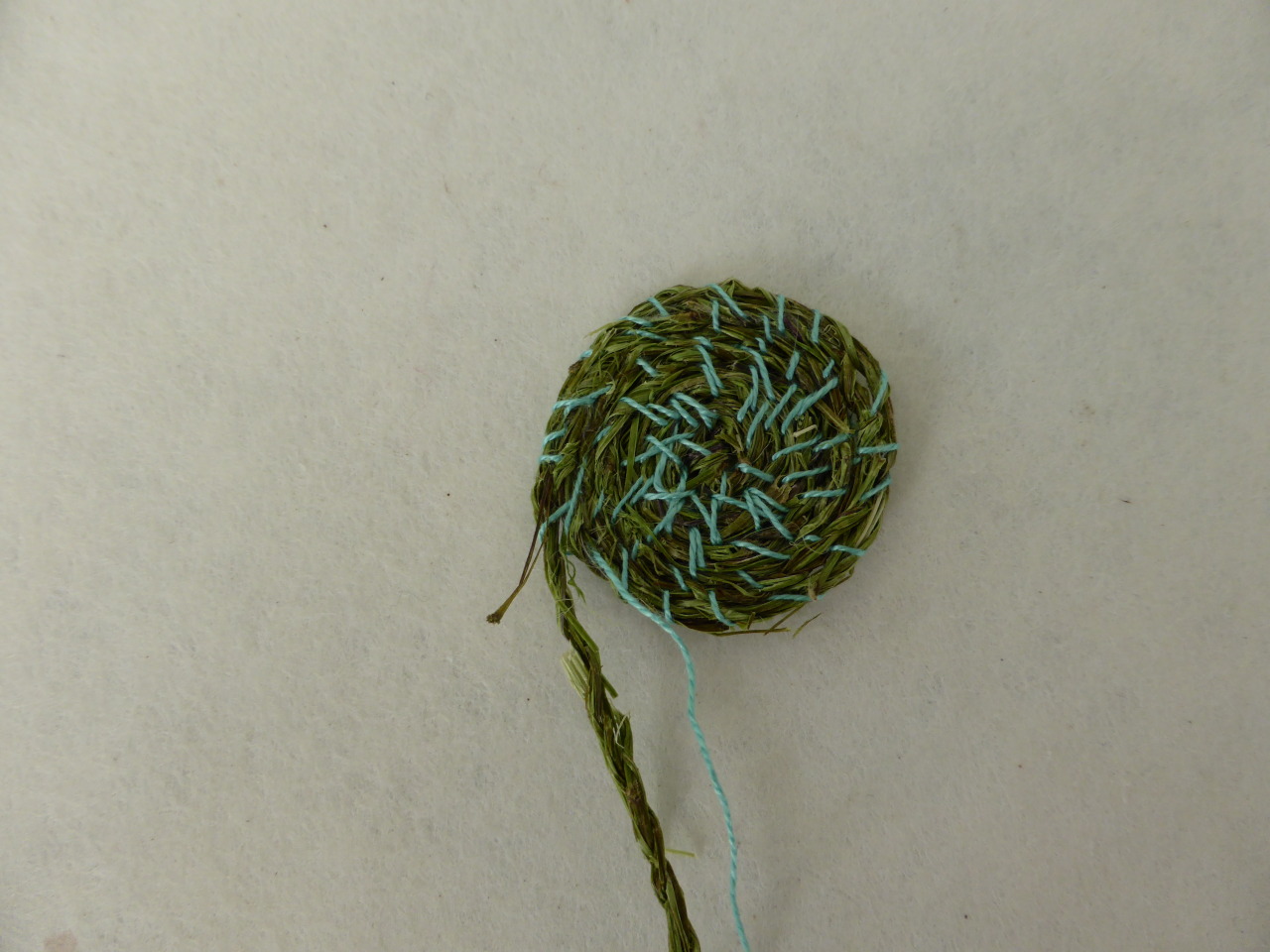 The dried Nettle fibers are turned and twisted by hand to create a strong and long natural fiber rope.